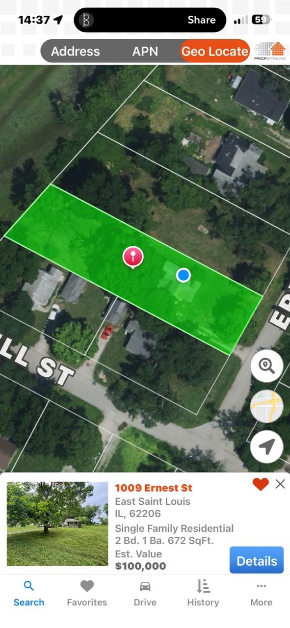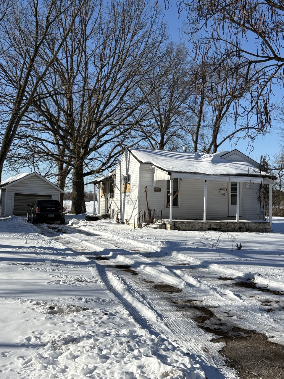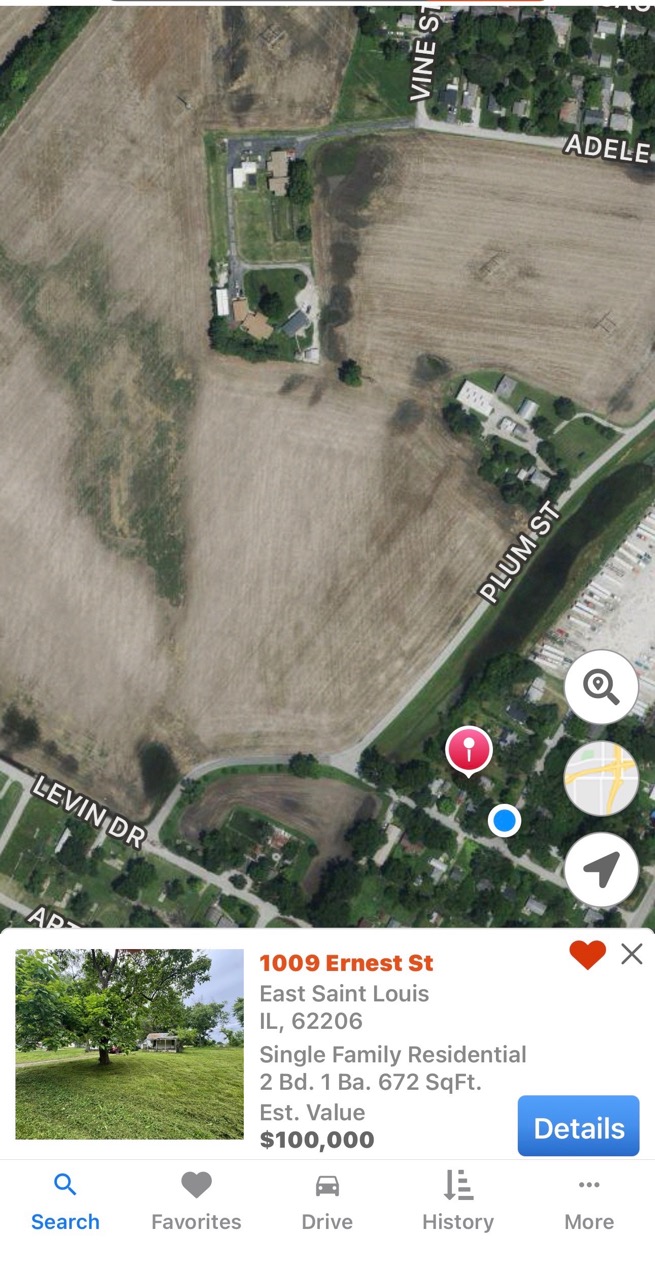 2-bedroom, 1-bath home located in Cahokia, IL offering 672 sq ft and a larger lot that backs up to farmland, providing a more open, county-style setting.