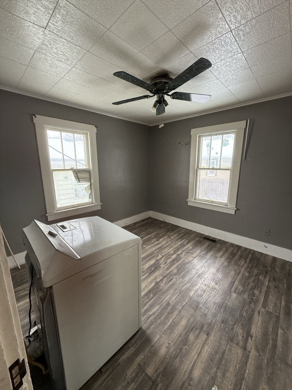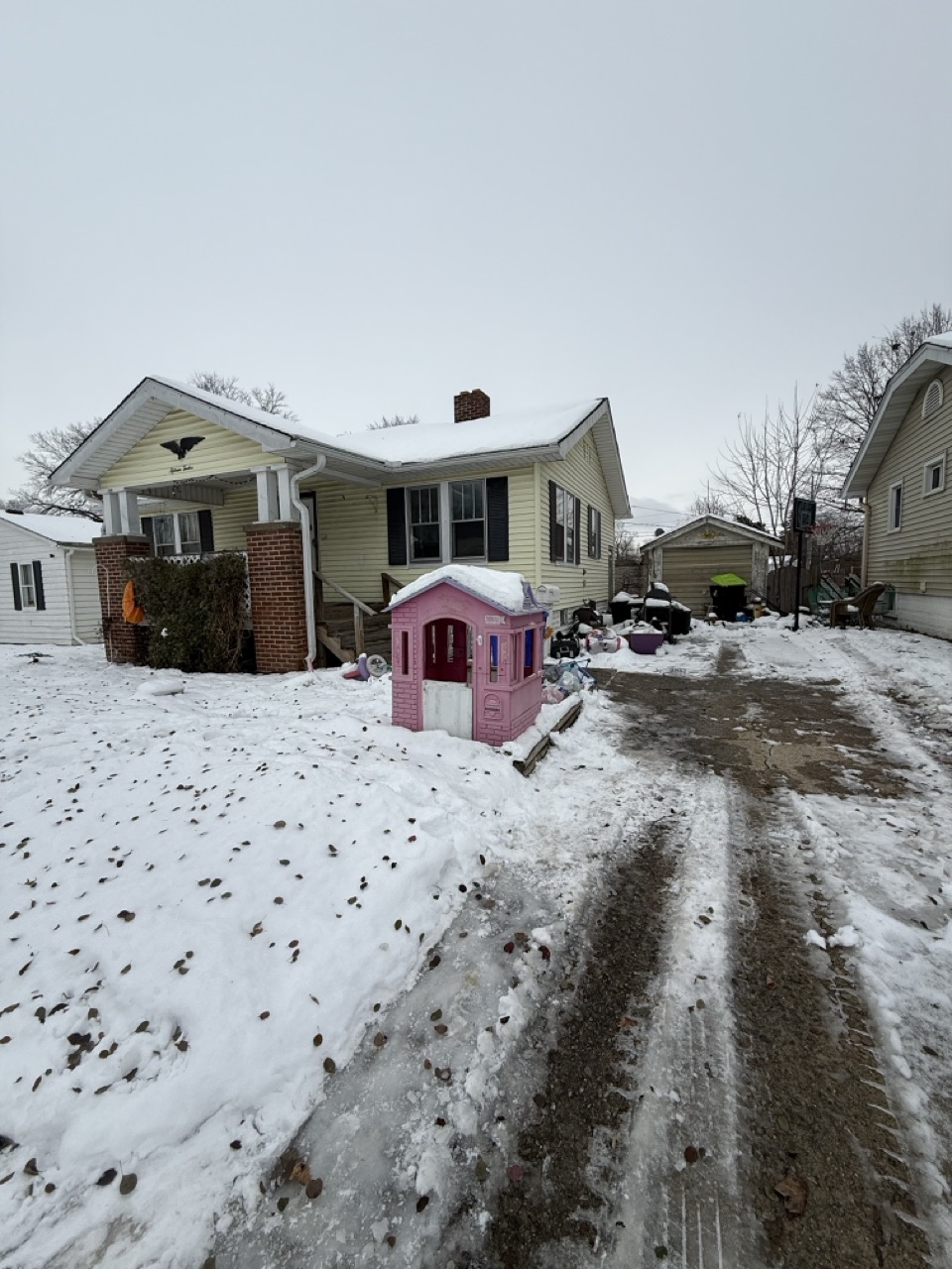 According to the seller, all major systems are working. The water is currently off, and the status of electric service is uncertain and should be verified by the buyer. The property features a detached 1-car garage and a fenced yard, offering additional storage and outdoor space.