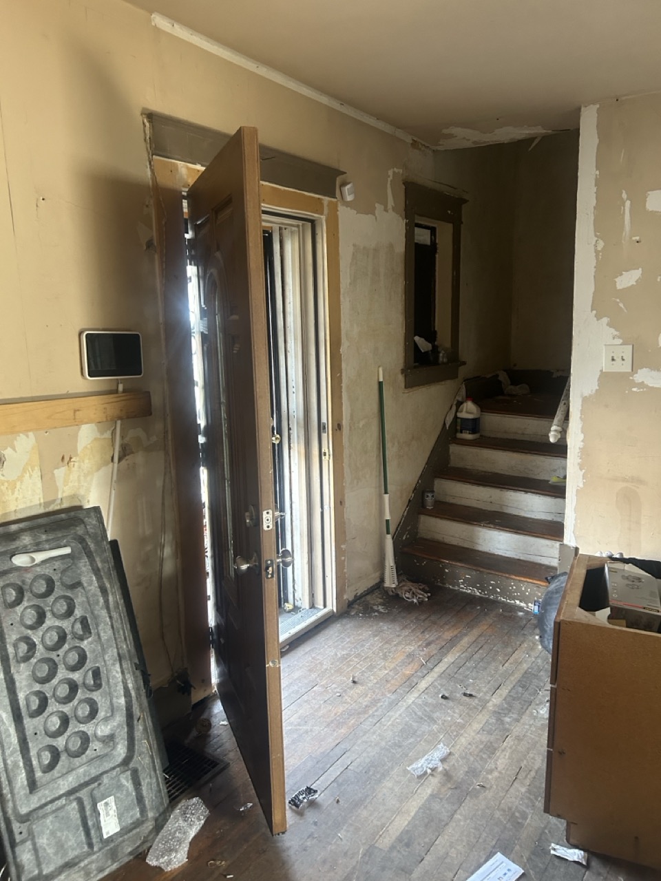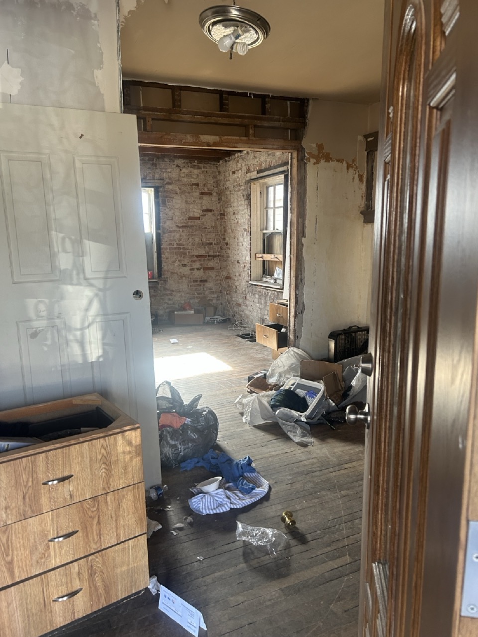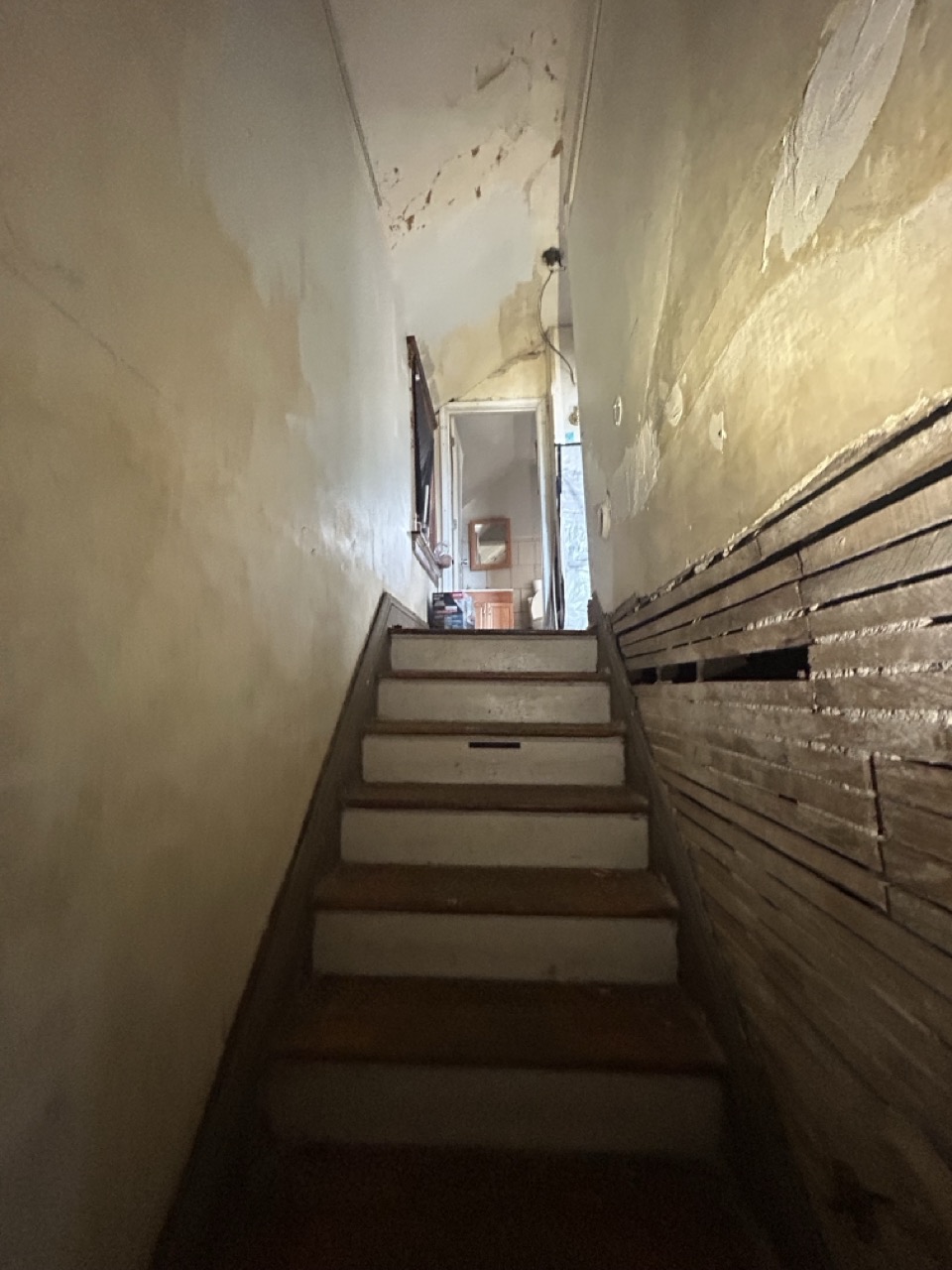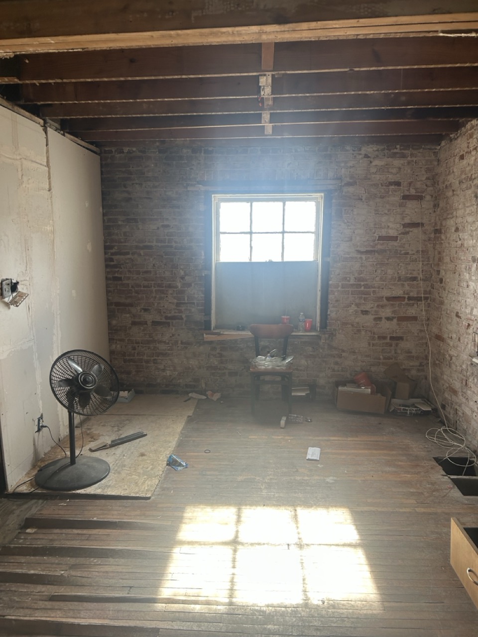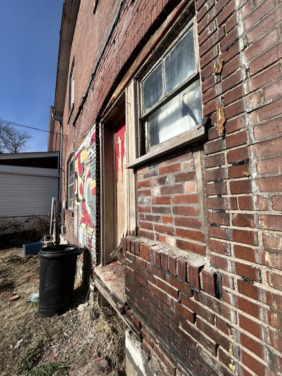 Power and water are currently on. The front door and lower-level windows are boarded for protection; new windows are installed underneath the boards. Buyers should review photos and walkthrough materials to understand layout, condition, and scope of work.