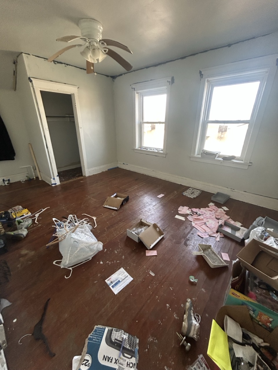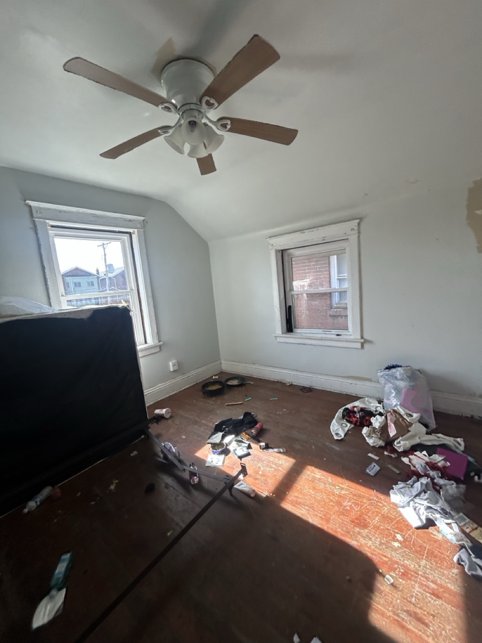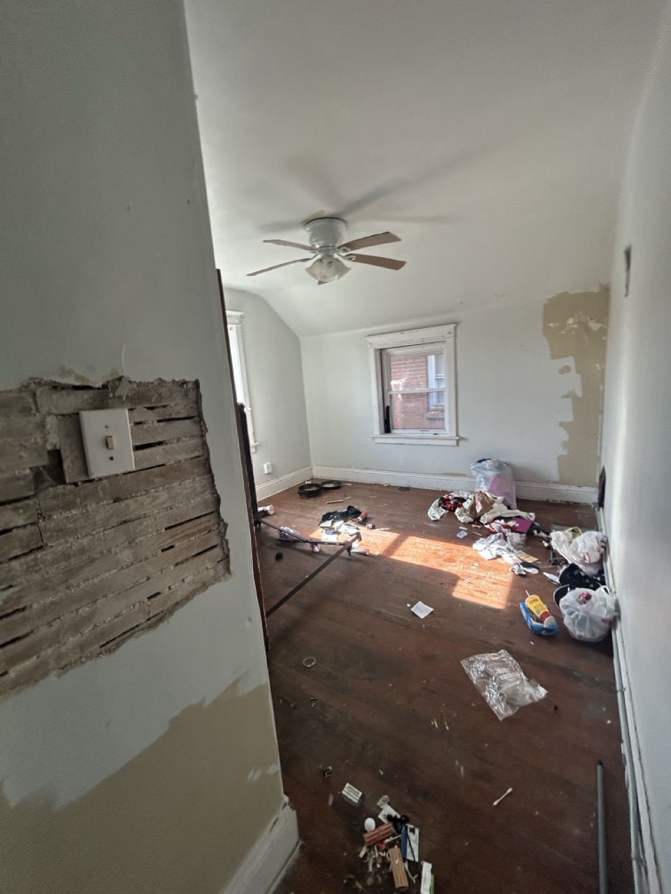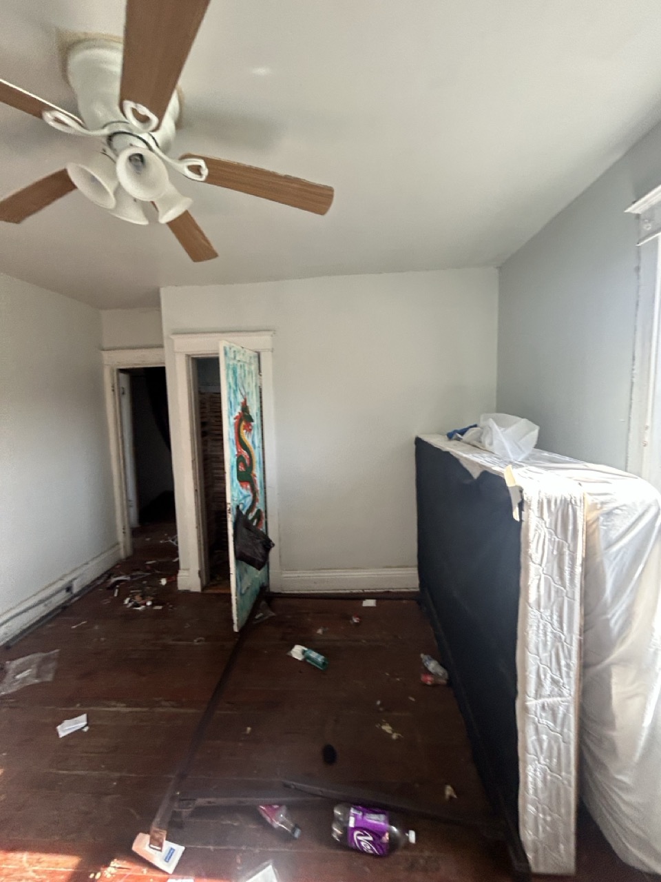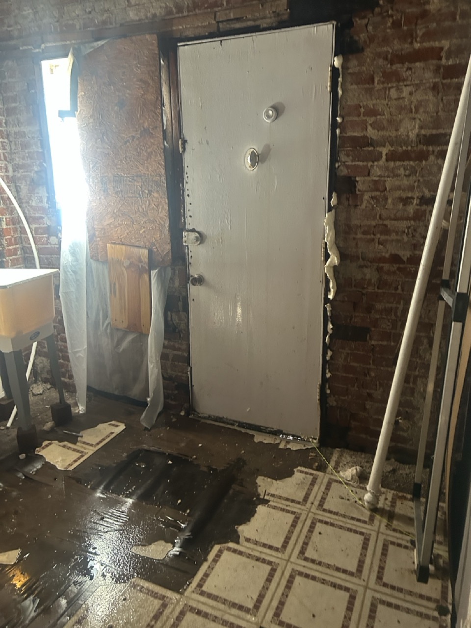 Power and water are currently on. The front door and lower-level windows are boarded for protection; new windows are installed underneath the boards. Buyers should review photos and walkthrough materials to understand layout, condition, and scope of work.